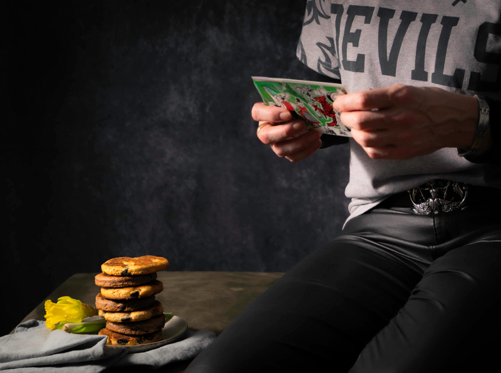 Ein Jahr nach dem ersten Versuch sind die Welsh Cakes neu inszeniert. Die Fotos vom 1.3.2026 zeichnen sich durch stärkere Textur, präziseres Licht-Schattenspiel und meinen über ein Jahr intensiv verfeinerten Food Glam Stil aus. Richtungslicht, kontrollierte Reflektionen, reduzierte Schärfentiefe und gezielte Nachbearbeitung heben Krümel, Ränder und Rosinen hervor und lassen das Food erstrahlen. Das Ergebnis: Bilder, die wirken, schmeckbar erscheinen und professionell inszeniert sind.